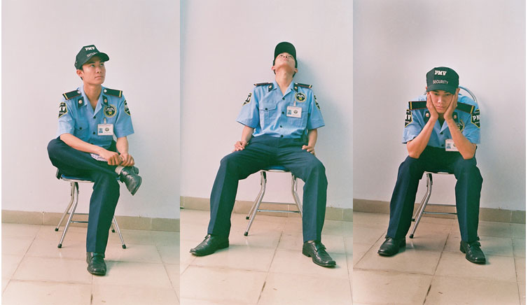 Bạn phải ngồi ngay ngắn, hai chân mở rộng, lưng thẳng, mắt nhìn thẳng (H2 – H4). Bạn tuyệt đối không được gác chân lên, không bỏ tháo giày ra khỏi chân, không rung đùi, không ngửa cổ ra sau hoặc gục đầu xuống, không chống tay lên cằm (H5).