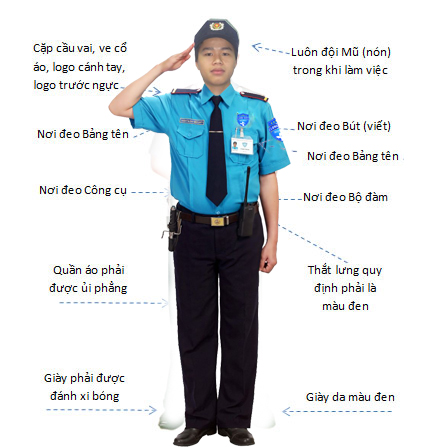 Bạn phải tự trang bị thắt lưng màu đen, giày da màu đen đi cùng với đồng phục.